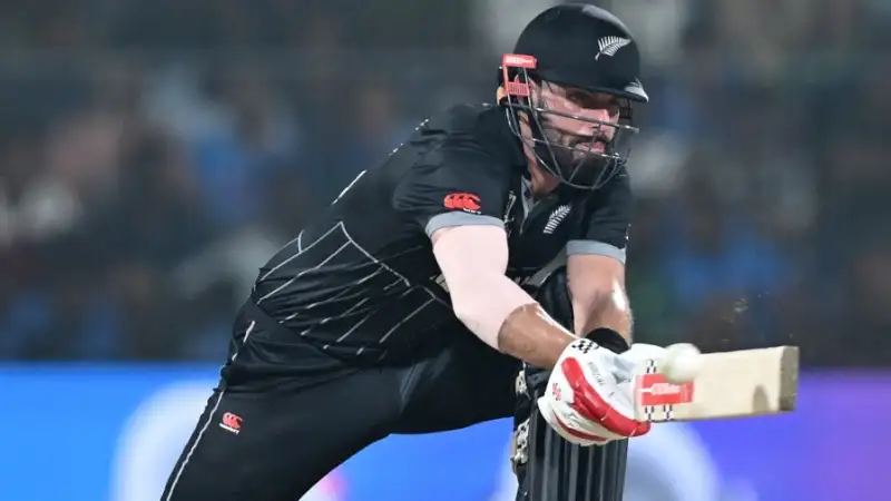 New Zealand’s run chase had a shaky beginning when opener Rachin Ravindra fell early, courtesy of Mustafizur Rahman, putting their batsmen under pressure. Devon Conway and skipper Kane Williamson took a cautious approach as they held their ground.